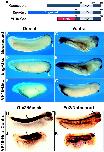 Fig. 4. VP16-Gsc activates Xwnt8 expression in animal explants. Animal explants were isolated from uninjected (A,B) or VP16-Gsc-injected embryos (C,D), and were cultured in the absence (A,C) or presence (B,D) of Activin protein. The morphology of explants was assessed at the tailbud stage. The expression of Xbra, Xwnt8 and BMP4 in response to Gsc or VP16-Gsc was examined by RT-PCR analysis at the gastrula stage (E). EF1α is a control for RNA recovery and loading. Intact embryos (embryo) served as a positive control and an identical reaction without reverse transcriptase controlled for PCR contamination (embryo-RT). Scale bar: 0.2 mm. |