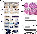Fig. 6. Xatv is essential for proper formation of mesodermal tissues at later embryogenesis. Classical exogastrulae were induced by incubating embryos with high salt (HS) solution. XatvMO1 + MO2-injected embryos (30ng each) were incubated in 1Ã SS without vitelline membranes. When sibling embryos reached stage 25, exogastrulae were collected. (A) In situ hybridization. (aâc) nrp-1 expression. [Quantitative analysis of alterations shown: b, n = 4/5; c, n = 7/8.] Yellow and blue lines in panel b indicate the protruded mesendodermal mass and ectoderm, respectively. (dâf) Xotx2 expression. White arrowheads in panel f indicate the expanded prechordal plate in the anterior end. [Quantitation: e, n = 5/5; f, n = 9/9.] (gâi) Shh expression. Red arrowheads in panel i indicate the expanded prechordal plate in head mesoderm. [Quantitation: h, n = 8/11; i, n = 14/18.] (jâl) Xatv expression. [Quantitation: k, n = 5/7; f, n = 10/15.] Yellow and blue arrowheads in panel j: Xatv expression at the hypochord and neural tube floorplate, respectively. Yellow and blue arrowheads in panel k: Xatv signal at the dorsal mesendodermal mass and mesendodermal mass/ectoderm junction, respectively. (kâ², lâ²) Magnified views of panels k and l, respectively. (mâr) MyoD expression. [Quantitation: n, n = 6/6; o, n = 19/19.] (sâw) edd expression. Yellow arrowheads in panel w indicate the intense staining in axial mesoderm. [Quantitation: t, n = 9/9; u, n = 18/18.] (aâo, sâu) Lateral views, anterior left, dorsal upward. (pâr) Magnified dorsal view of panels mâo, respectively. (v, w) Dorsal views. (B) Histological morphology and relative volume of notochord + hypochord and mesodermal tissues in HS and XatvMO1 + MO2-induced exogastrulae. (aâd) Hematoxylin/eosin staining of exogastrulae after transverse sectioning (after whole-mount in situ hybridization for Xatv). Green dashed lines in panels a and c encircle the mesoderm area including somite and ventral mesodermal cells. (b, d) Magnified views of dorsal side of panels a and c, respectively. Yellow dashed line in panel d indicates the crescent-shaped tissue containing elongated cells and nuclei that are indicative of somitic muscle differentiation, which is less obvious within somitic mesoderm area in the HS-induced exogastrulae. (e, f) Comparison of the relative volume of hypochord + notochord area (e) and mesodermal area (f) between HS- and XatvMO1 + MO2-induced exogastrulae. |