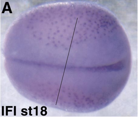 expression at neurula stage 18 (B, dorsal view; C, anterior view,