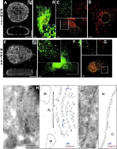 Intracellular distribution of an integral nuclear pore membrane protein fused to green fluorescent protein--localization of a targeting domain.
