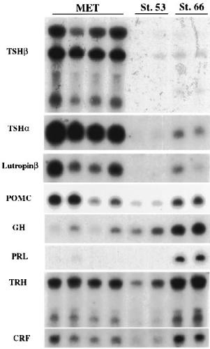Fig. 4. Northern blot of various pituitary and hypothalamic hormones. Total
