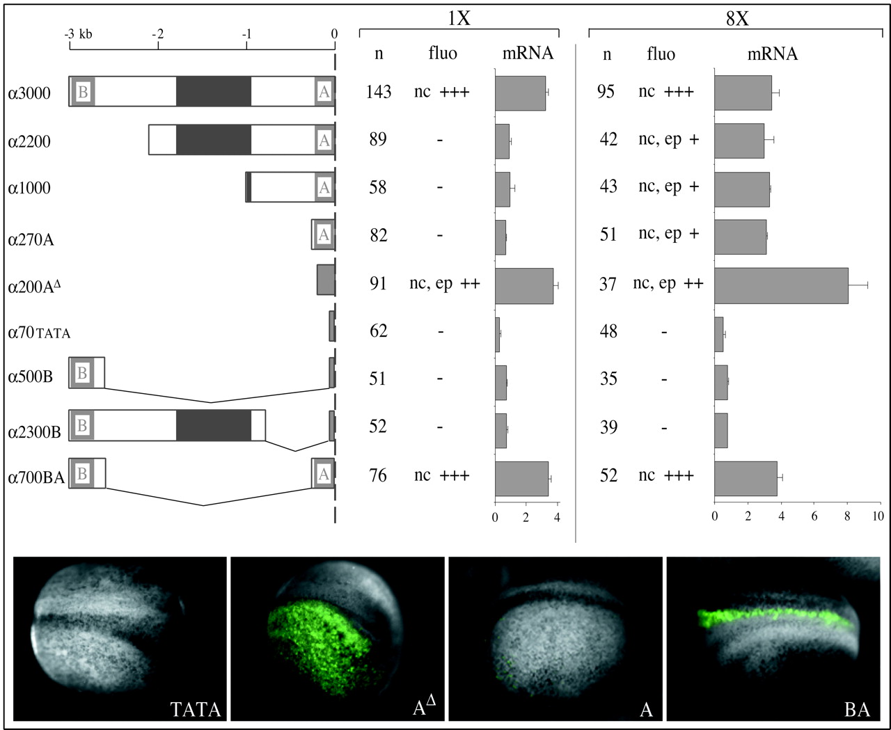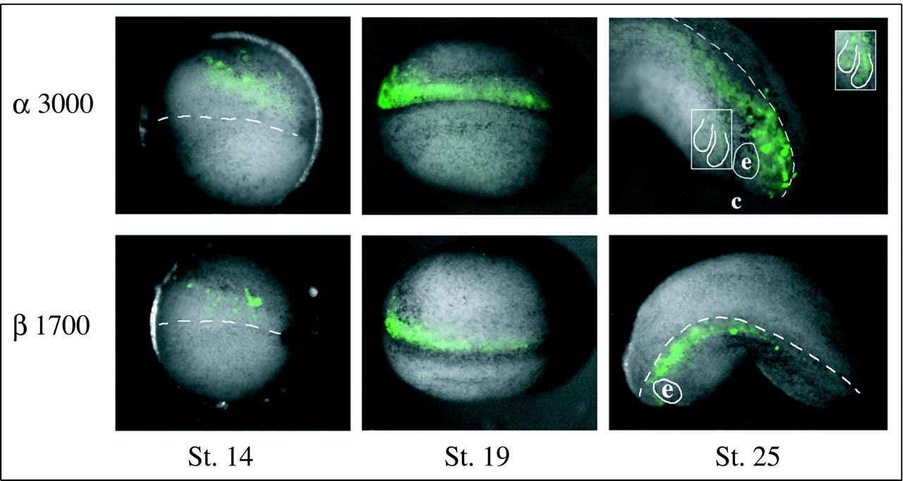 p200-GFP and p3900-GFP constructs gave the strongest expression. B, to compare the efficiency of the X. tropicalis slug promoter with that of the