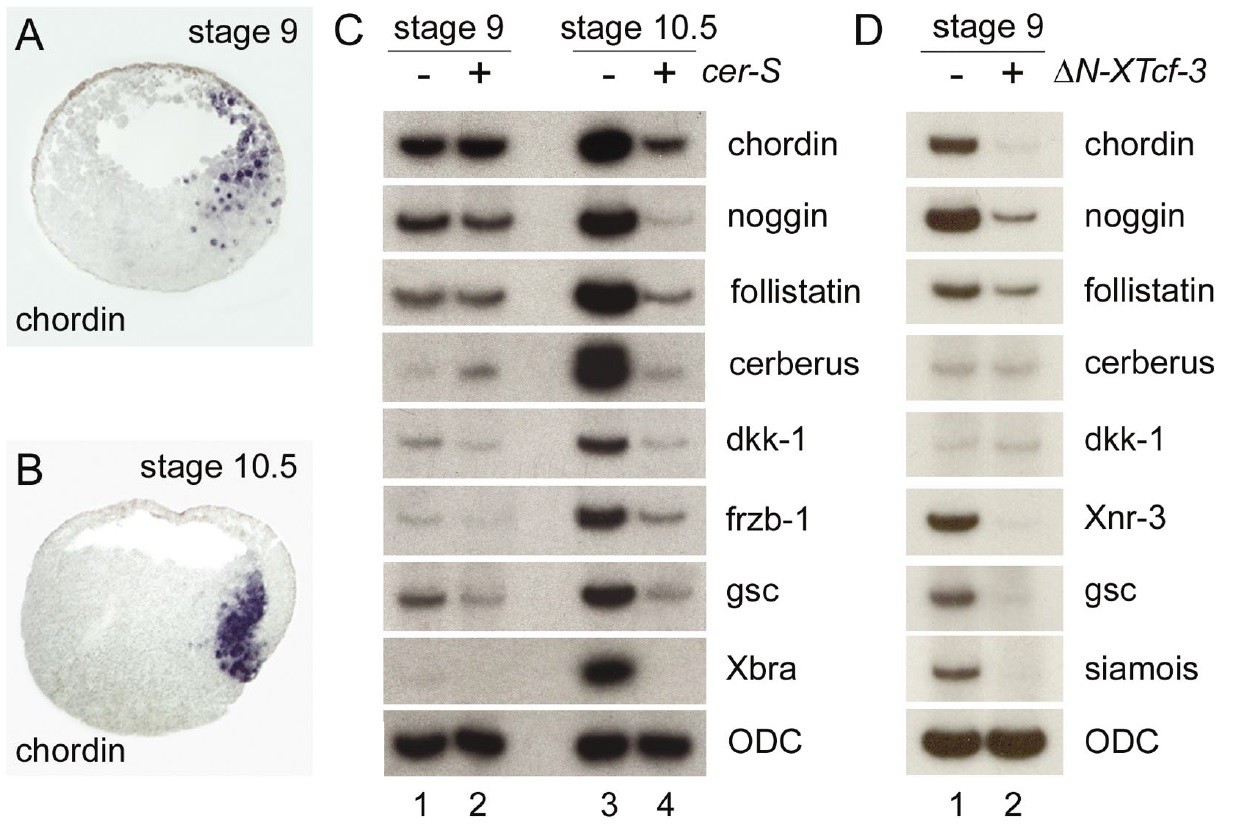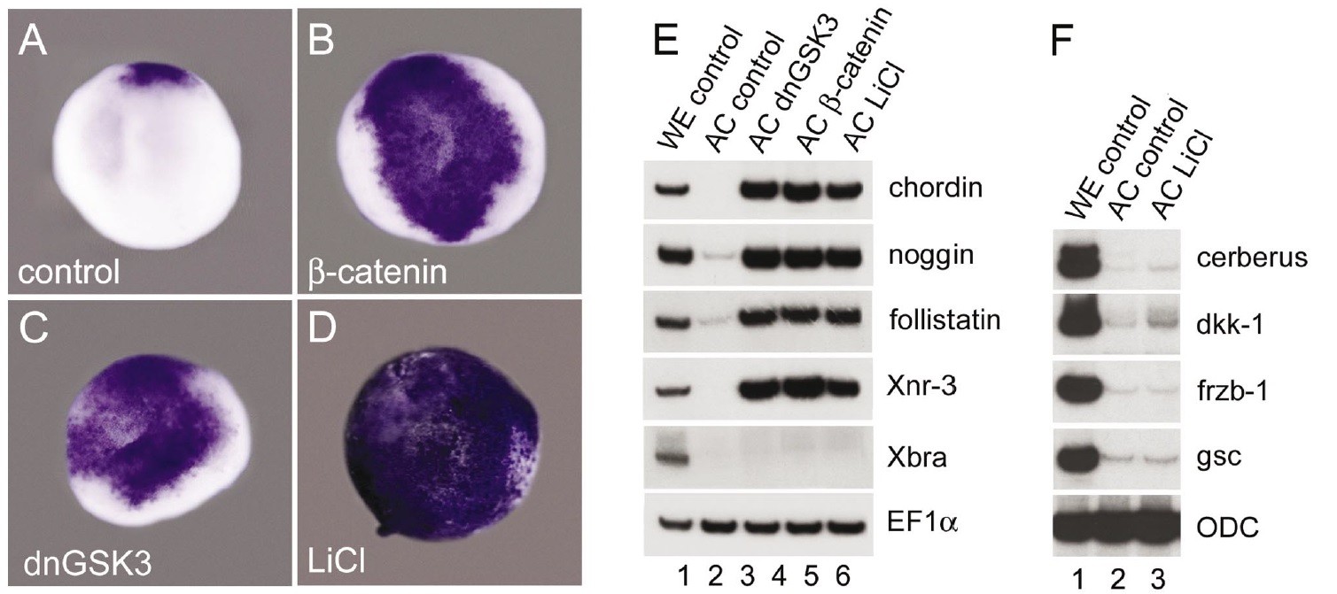 Genes referenced: actl6a actn1 bmp4 cer1 chrd ctnnb1 dkk1 eef1a2 egr2 en2 frzb fst gsc lefty1 ncam1 nodal nodal1 nodal3 nodal3.2 nog odc1 otx2 snai2 sox2 tbx2 tbxt tcf7l1