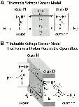 Figure 1. Titrateable voltage sensor models. (A) Gating currents were modeled as transitions between H and D connected by voltage-dependent rate constants α and β. The charge carried by the titrateable voltage sensor in each transition between H and D is either z or z + z1, as determined by the equilibrium dissociation constant, pK (Ki or Ko), of the titrateable group and the surrounding pH (Hi+ or Ho+ if the titrateable group gets exposed to the internal or external solution, respectively). Since the S4 segment, which contains most of the voltage sensing residues, is positively charged, depolarization of the membrane (gray box) moves the voltage sensor from the inside of the membrane towards the outside, thereby moving charge z or z + z1, in the transition. (B) The titrateable voltage sensor model shown in A was extended to incorporate the formation of a one-ion proton pore at depolarized potentials. In the D states, the titrateable residue has access to both the internal and external solutions simultaneously, and this creates a proton pathway through the membrane. Proton binding in the D states from the external solution depends on the dissociation constant, pKo (Ko = γo/Éo) and the external pH (Ho); binding from the internal solution depends on pKiP (KiP = γip/Éip) and pHi. |