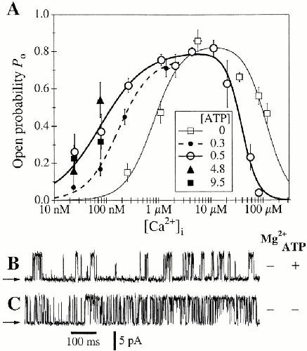 Mak, ATP regulation of type 1 inositol 1,4,5-trisphosphate receptor channel gating by allosteric tuning of Ca(2+) activation. 1999, Pubmed , Xenbase