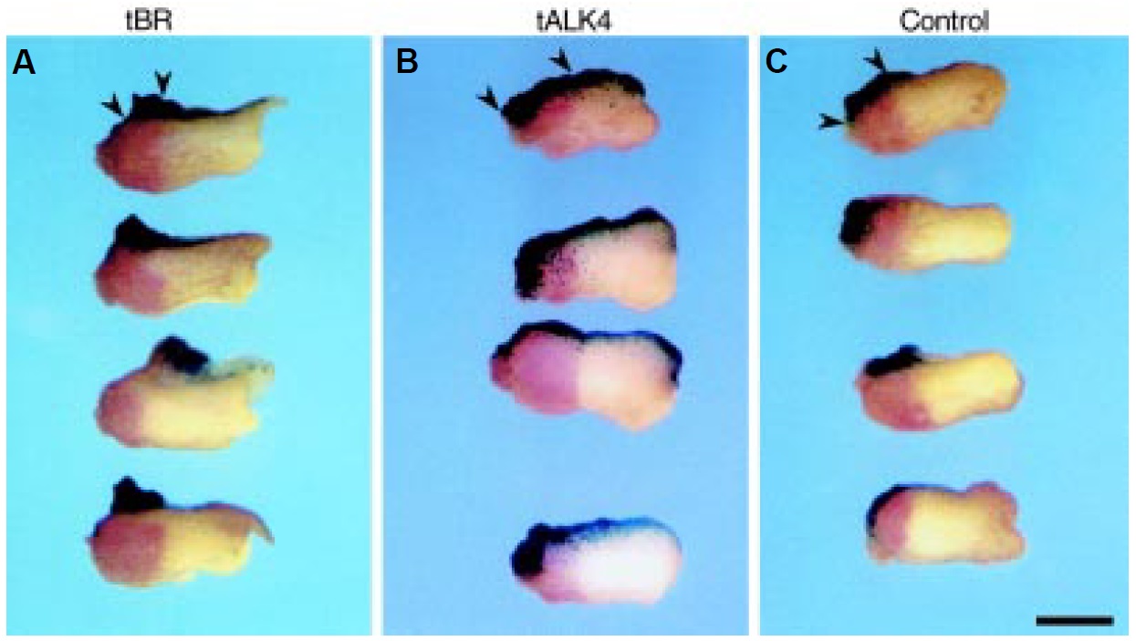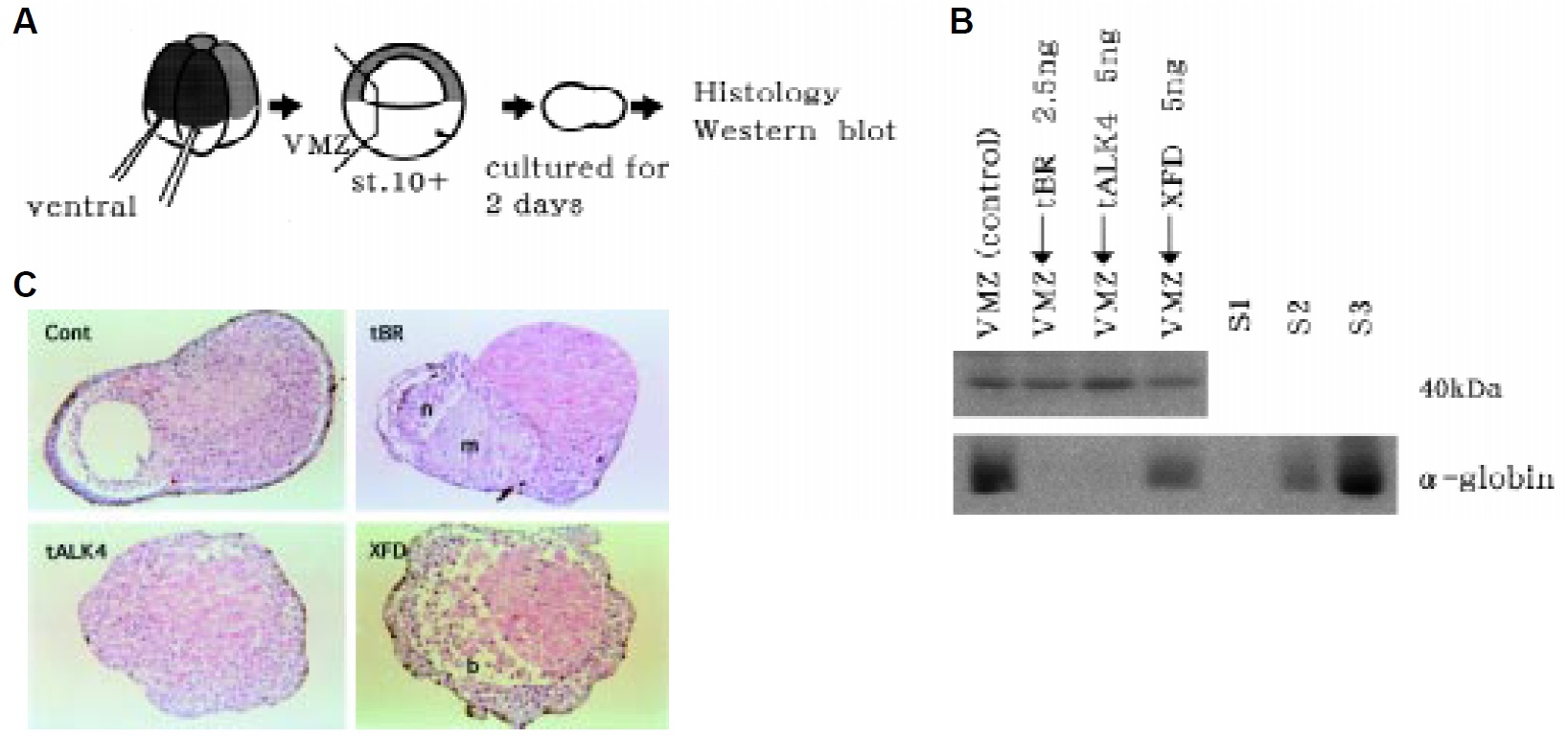a-globin was completely suppressed in the explants injected with tBR or tALK4 RNA,