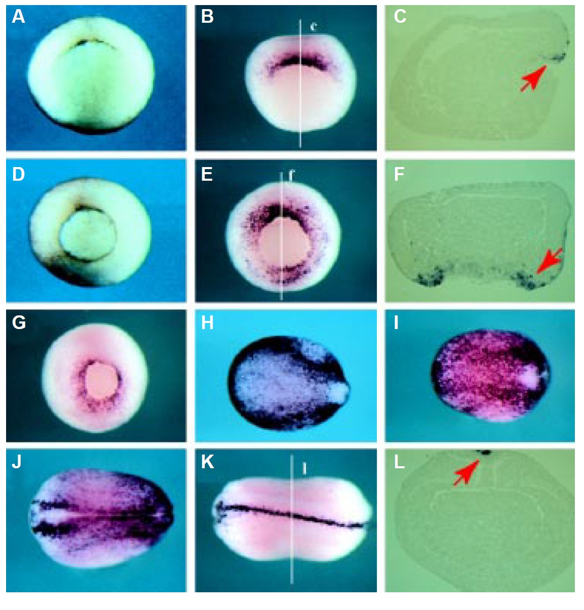 Transverse sections of embryos displayed in (A). (D) Time course (0â-60â) of Xwig1