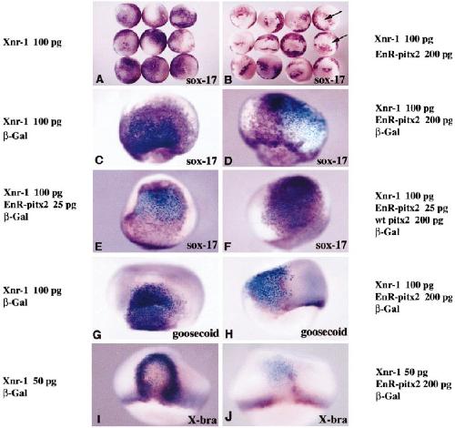 EnR-pitx2 RNA with 100 pg of Xnr-1 into one blastomere at the four-cell stage. (F) Reversal of the effect by co-injection of 25 pg of EnR-pitx2