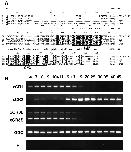 Fig. 1. Comparison of amino acid sequences and temporal expression patterns of Xenopus EGF-CFC factors. (A) Comparison of the amino acid sequences of Xenopus EGF-CFC proteins (XCR1, XCR2, XCR3S and XCR3L). XCR3L has a 72 amino acid insertion following the signal sequence of XCR3S. Dash indicates no amino acid present. Identical residues are shadowed. Conserved EGF-like domains and CFC domains are underlined. Cysteine residues in the additional 72 amino acids of XCR3L are indicated by asterisks. (B) Temporal expression patterns of Xenopus EGF-CFC genes (XCR1, XCR2, XCR3S and XCR3L) detected by RT-PCR. RNA was extracted from embryos at the stages indicated over each lane. XCR3S (lower band) and XCR3L (upper band) were detected using a set of primers designed to span the insert region. Both bands showed a similar temporal expression pattern. e, un-fertilized egg; RT-, RT-PCR reaction without reverse transcriptase. |
