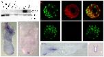 Fig. 6. GDF3 expression during development. (A) RT-PCR of GDF3 throughout early mouse embryo development. HPRT is shown as a loading control and HPRT no RT as a negative control. (B) Immunofluoresence (IF) of GDF3 protein [red (middle)] as detected by goat αGDF3 and counterstained with Sytox Green nuclear stain [green (left)], merged in the right panels. The lower panels show a no primary antibody control. Magnification is 10Ã. (C-F) E7.5 (C), E8.0 (D) and E8.5 (E) embryo in-situ hybridization with GDF3 anti-sense probe. F shows 10-μm sections of whole-mount in-situ hybridizations. In all in-situ experiments, a sense probe showed no specific staining.