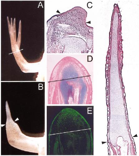 amputation. (C) A section of a blastema formed on the forelimb at 7 days after amputation. (D, E) BrdU incorporation in a blastema of