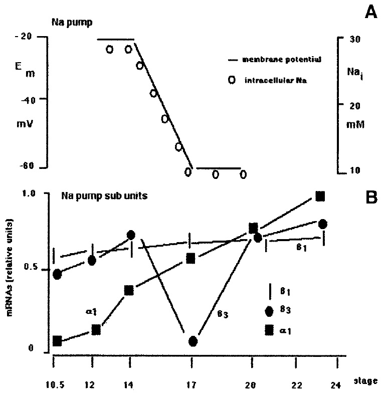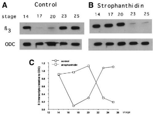 stage 17. Note that b3 transcript levels fall when the Na pump is