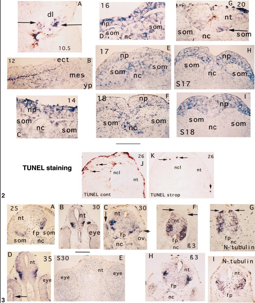 differentiate (arrows) and substantial expression in the somites. (B) Stage 21 control. Expression in the neural tube is limited to the future sites of
