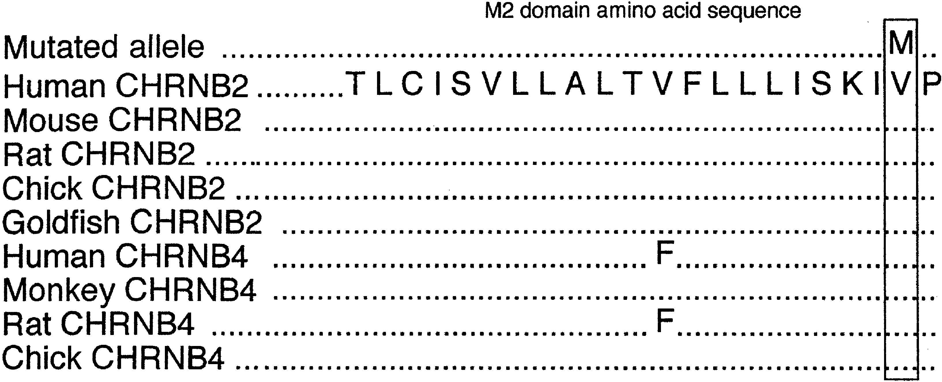 A novel mutation of CHRNA4 responsible for autosomal dominant nocturnal frontal lobe epilepsy.