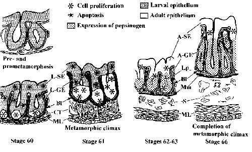 Thyroid hormone-induced apoptosis of larval cells and differentiation of pepsinogen-producing cells in the stomach of Xenopus laevis in vitro., Differentiation 1998 |