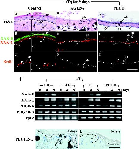 Platelet-derived growth factor signaling as a cue of the epithelial-mesenchymal interaction required for anuran skin metamorphosis., Dev Dyn 2003 |