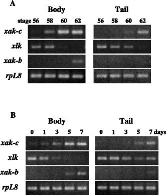 Metamorphosis-dependent transcriptional regulation of xak-c, a novel Xenopus type I keratin gene., Dev Dyn 2002 |