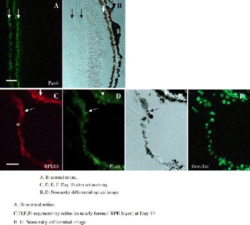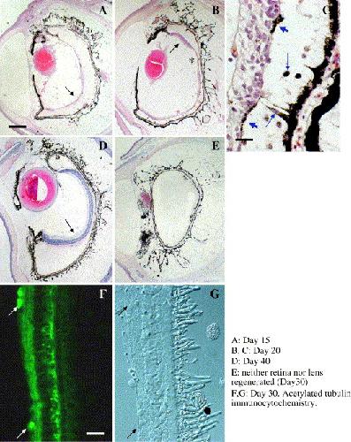 Neural retinal regeneration in the anuran amphibian Xenopus laevis post-metamorphosis: transdifferentiation of retinal pigmented epithelium regenerates the neural retina., Dev Biol 2007 |