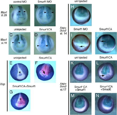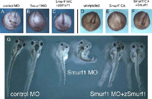 Smurf1 regulates neural patterning and folding in Xenopus embryos by antagonizing the BMP/Smad1 pathway., Dev Biol 2006 |