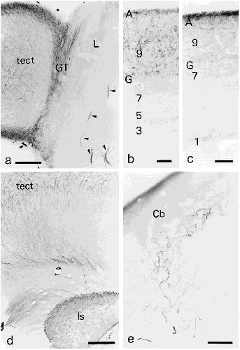 Distribution of choline acetyltransferase immunoreactivity in the brain of anuran (Rana perezi, Xenopus laevis) and urodele (Pleurodeles waltl) amphibians., J Comp Neurol 1997 |