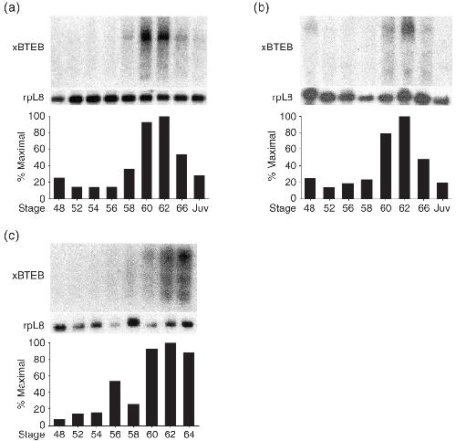 Basic transcription element binding protein is a thyroid hormone-regulated transcription factor expressed during metamorphosis in Xenopus laevis., Dev Growth Differ 2002 |