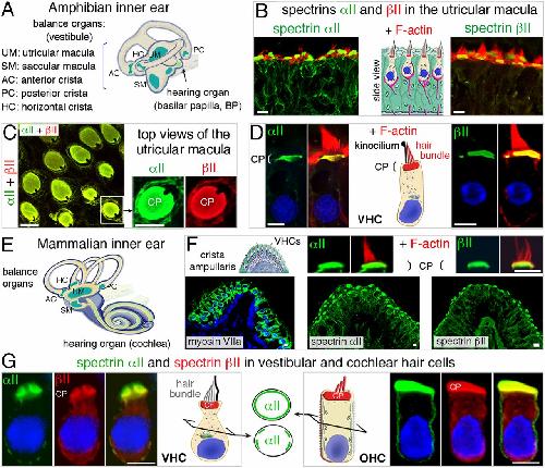 Spectrin βV adaptive mutations and changes in subcellular location correlate with emergence of hair cell electromotility in mammalians., Proc Natl Acad Sci U S A 2017 |