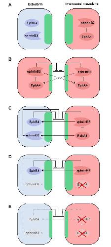 A molecular base for cell sorting at embryonic boundaries: contact inhibition of cadherin adhesion by ephrin/ Eph-dependent contractility., Dev Cell 2013 |