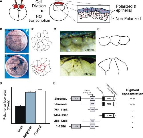 Shroom induces apical constriction and is required for hingepoint formation during neural tube closure., Curr Biol 2003 |