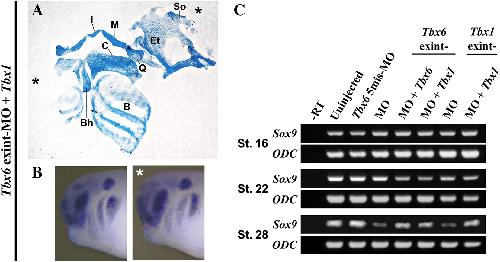 Paraxial T-box genes, Tbx6 and Tbx1, are required for cranial chondrogenesis and myogenesis., Dev Biol 2010 |