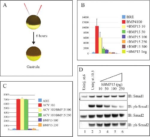 Bone morphogenetic protein 15 (BMP15) acts as a BMP and Wnt inhibitor during early embryogenesis., J Biol Chem 2009 |