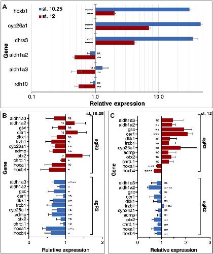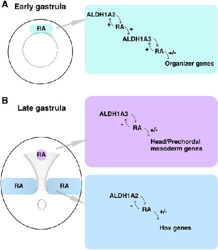 Ethanol exposure affects gene expression in the embryonic organizer and reduces retinoic acid levels.,