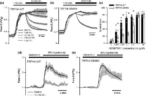 Structural determinants of TRPV4 inhibition and identification of new antagonists with antiviral activity.,