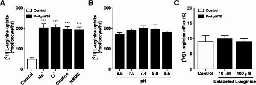 Characteristics of Plasmodium vivax apicomplexan amino acid transporter 8 (PvApiAT8) in the cationic amino acid transport.,