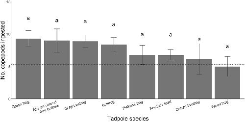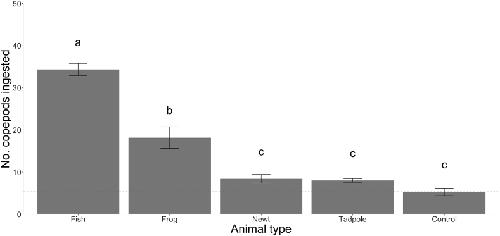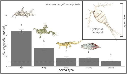 Copepod consumption by amphibians and fish with implications for transmission of Dracunculus species.,