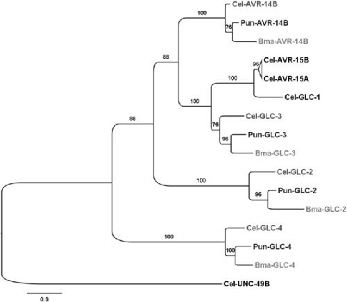 Pharmacological characterization of novel heteromeric GluCl subtypes from Caenorhabditis elegans and parasitic nematodes.,