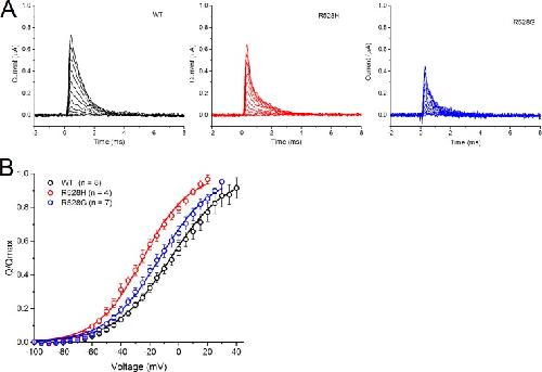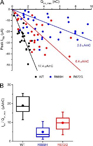 Disrupted coupling of gating charge displacement to Na+ current activation for DIIS4 mutations in hypokalemic periodic paralysis.,