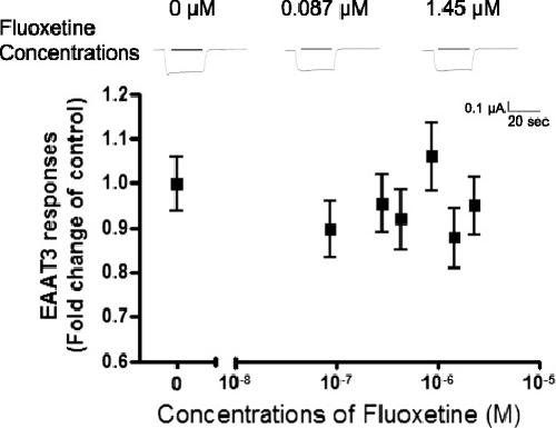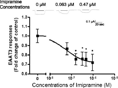Doxepin and imipramine but not fluoxetine reduce the activity of the rat glutamate transporter EAAT3 expressed in Xenopus oocytes.,
