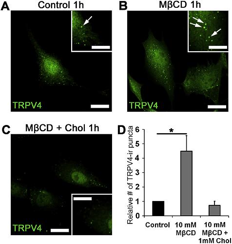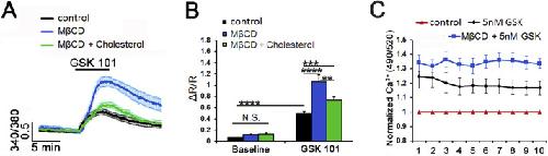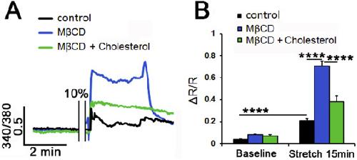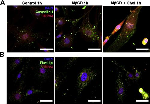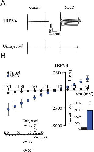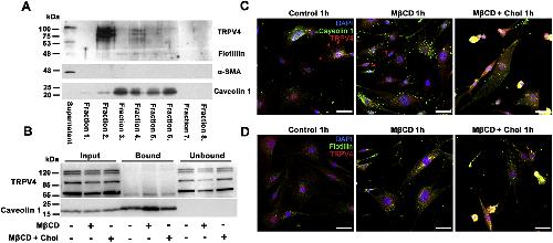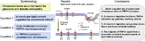 Membrane cholesterol regulates TRPV4 function, cytoskeletal expression, and the cellular response to tension.,
