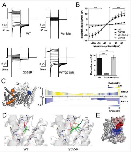 The muscle chloride channel ClC-1 has a double-barreled appearance that is differentially affected in dominant and recessive myotonia.,