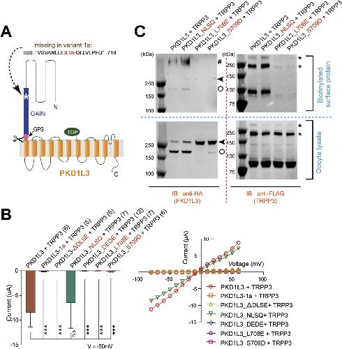 A PKD1L3 splice variant in taste buds is not cleaved at the G protein-coupled receptor proteolytic site.,