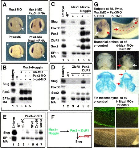 Msx1 and Pax3 cooperate to mediate FGF8 and WNT signals during Xenopus neural crest induction.,
