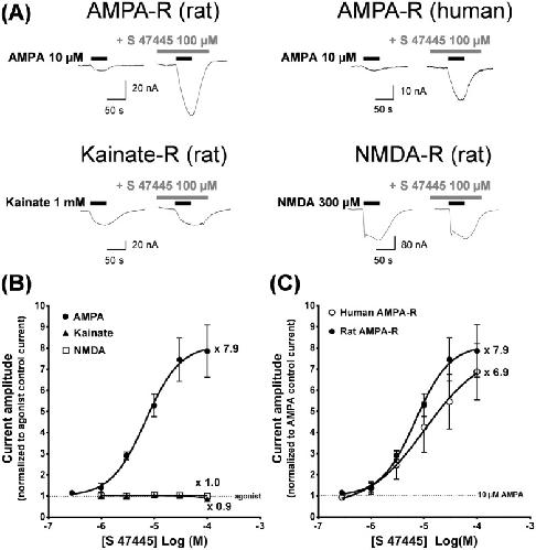 Pharmacological characterisation of S 47445, a novel positive allosteric modulator of AMPA receptors.,