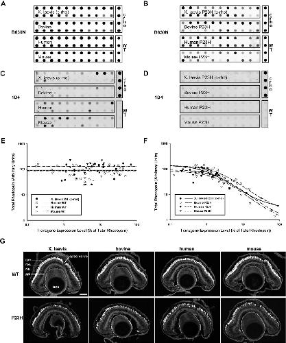 Xenopus laevis P23H rhodopsin transgene causes rod photoreceptor degeneration that is more severe in the ventral retina and is modulated by light.,