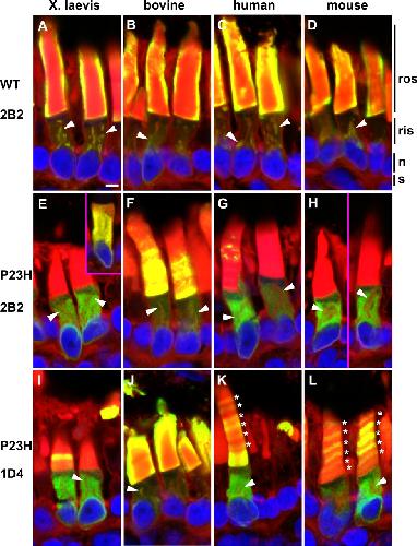Dark rearing rescues P23H rhodopsin-induced retinal degeneration in a transgenic Xenopus laevis model of retinitis pigmentosa: a chromophore-dependent mechanism characterized by production of N-terminally truncated mutant rhodopsin.,
