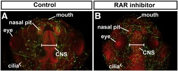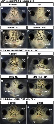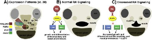 Median facial clefts in Xenopus laevis: roles of retinoic acid signaling and homeobox genes.,