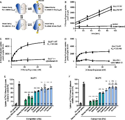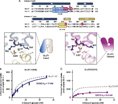 Structural comparison of GLUT1 to GLUT3 reveal transport regulation mechanism in sugar porter family.,