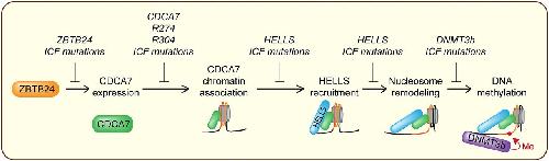HELLS and CDCA7 comprise a bipartite nucleosome remodeling complex defective in ICF syndrome.,