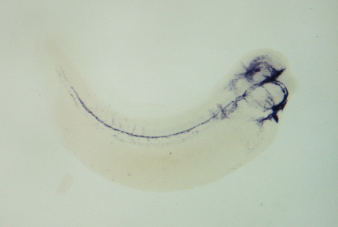 Larger Image gja4 (gap junction protein, alpha 4, 37kDa) gene expression in Xenopus laevis embryo, assayed via in situ hybridization, NF stage 36, lateral view, anterior right, dorsal up. Copyright © Patient Lab Image created by: Aldo Ciau-Uitz