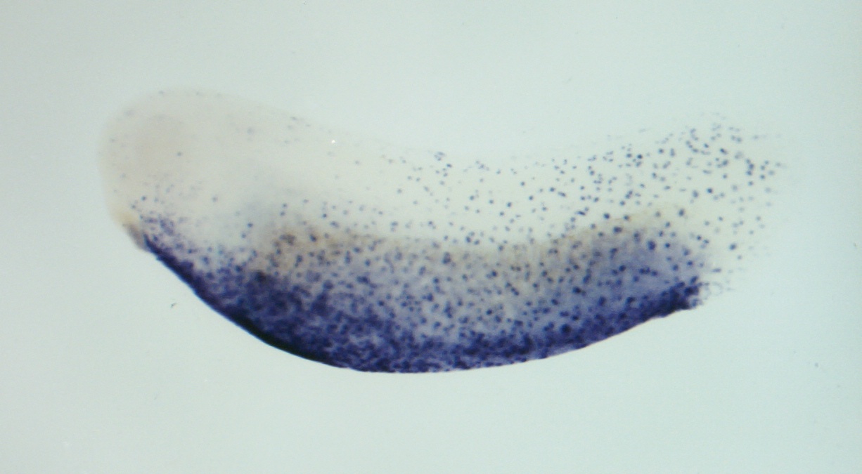 Larger Image cebpa (CCAAT/enhancer binding protein (C/EBP), alpha) gene expression in Xenopus laevis embryo, assayed via in situ hybridization, NF stage 28, lateral view, anterior left, dorsal up. Copyright © Patient Lab Image created by: Aldo Ciau-Uitz