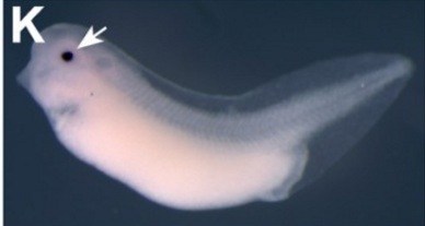 Larger Image crygb (crystallin gamma B) gene expression in Xenopus laevis embryo, assayed via in situ hybridization, NF stage 37 & 38, lateral view, anterior left, dorsal up. Image published in: Day RC and Beck CW (2011) Copyright ©2011 Day and Beck; licensee BioMed Central Ltd. Creative Commons Attribution license